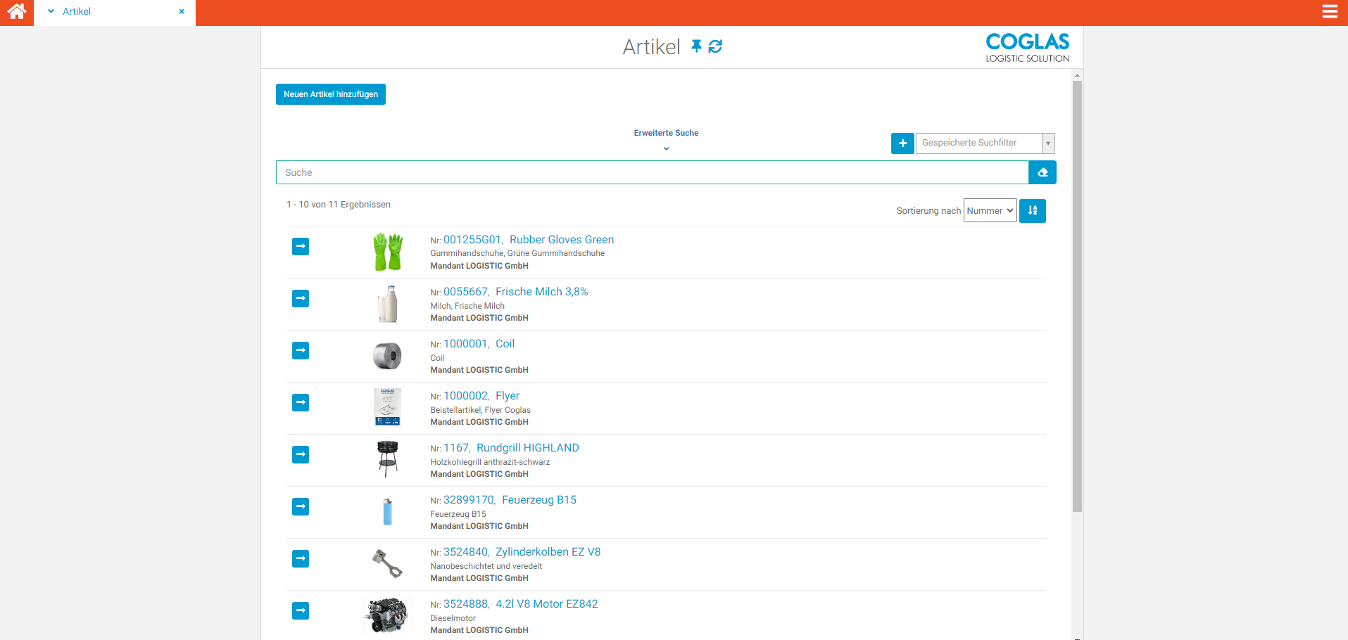 | 6 | Klicken sie auf „hinzufügen“, um die Artikel im COGLAS zu speichern, dieser wird nun in der Liste angezeigt | ![]() |