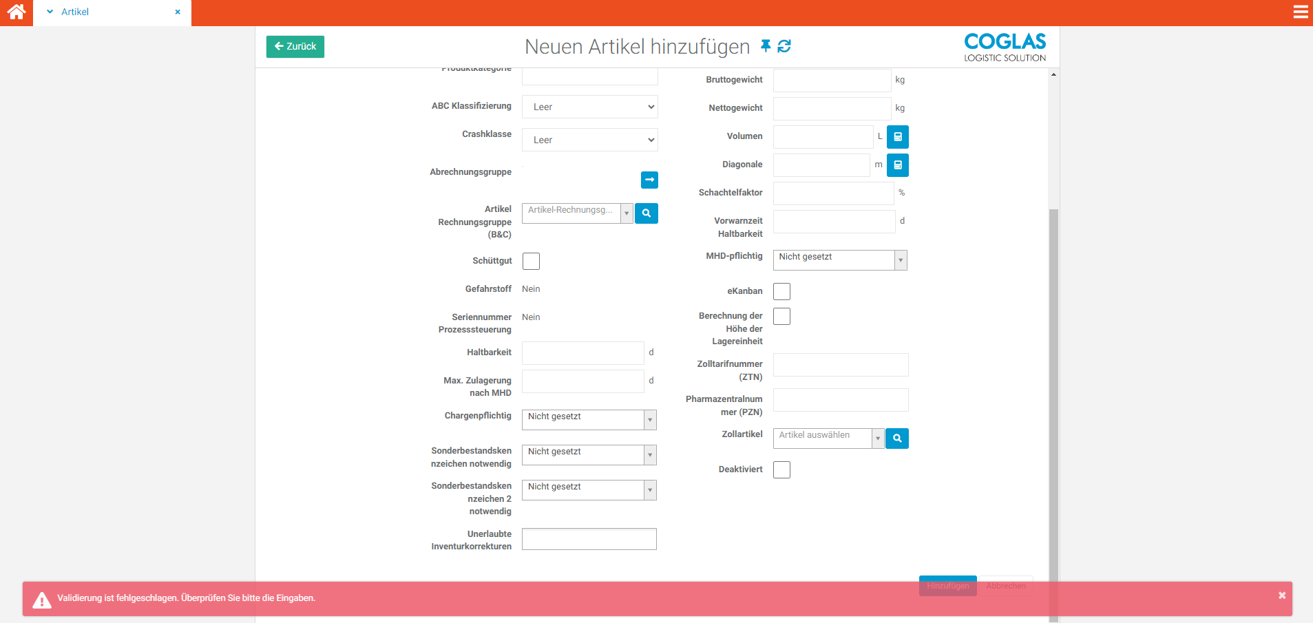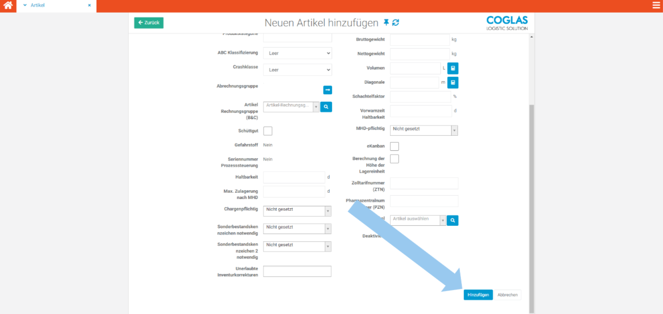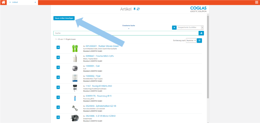 Im folgenden Abschnitt wird detailliert erläutert, wie Artikel manuell in COGLAS hinzugefügt werden können.