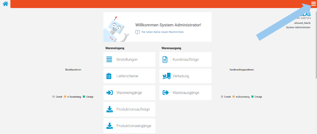 | 1 | Klicken Sie auf das Burgermenü, um zum System zu gelangen. | ![]() |