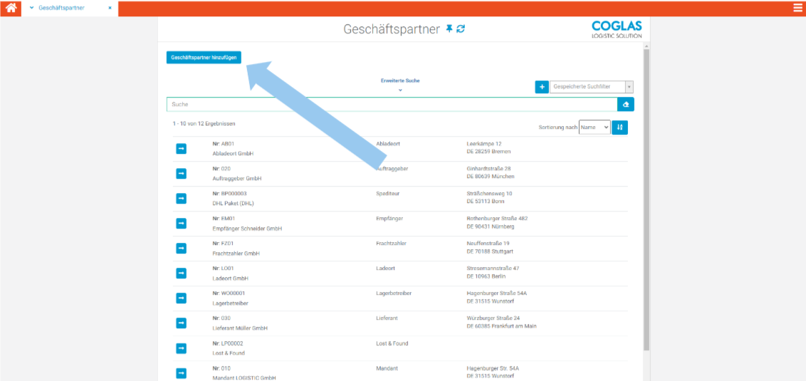 Im folgenden Abschnitt wird detailliert erläutert, wie Geschäftspartner manuell in COGLAS hinzugefügt werden können.